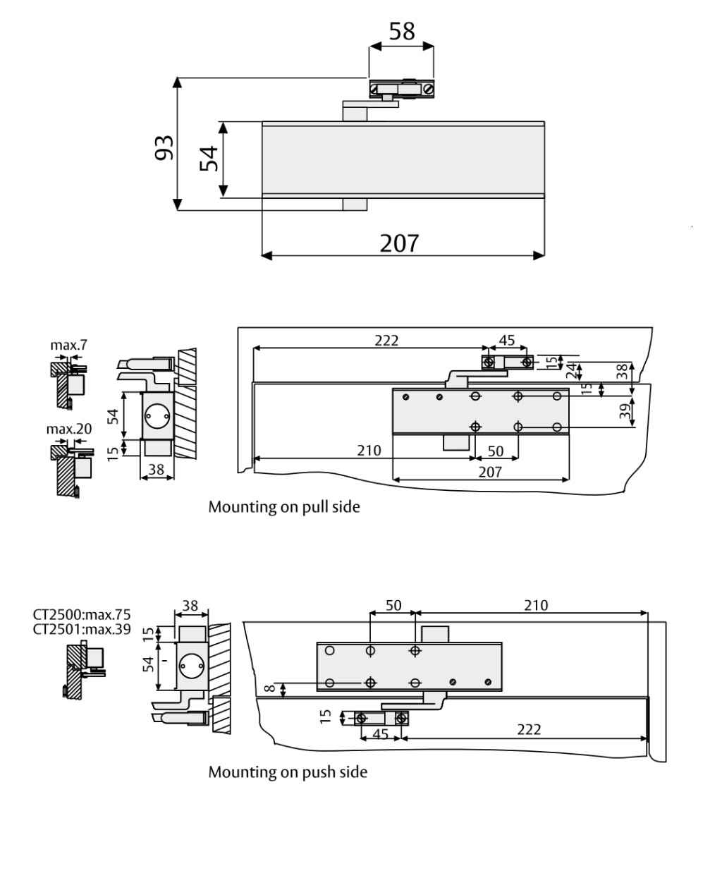 • komplett ajtócsukó, test és kar egyben
