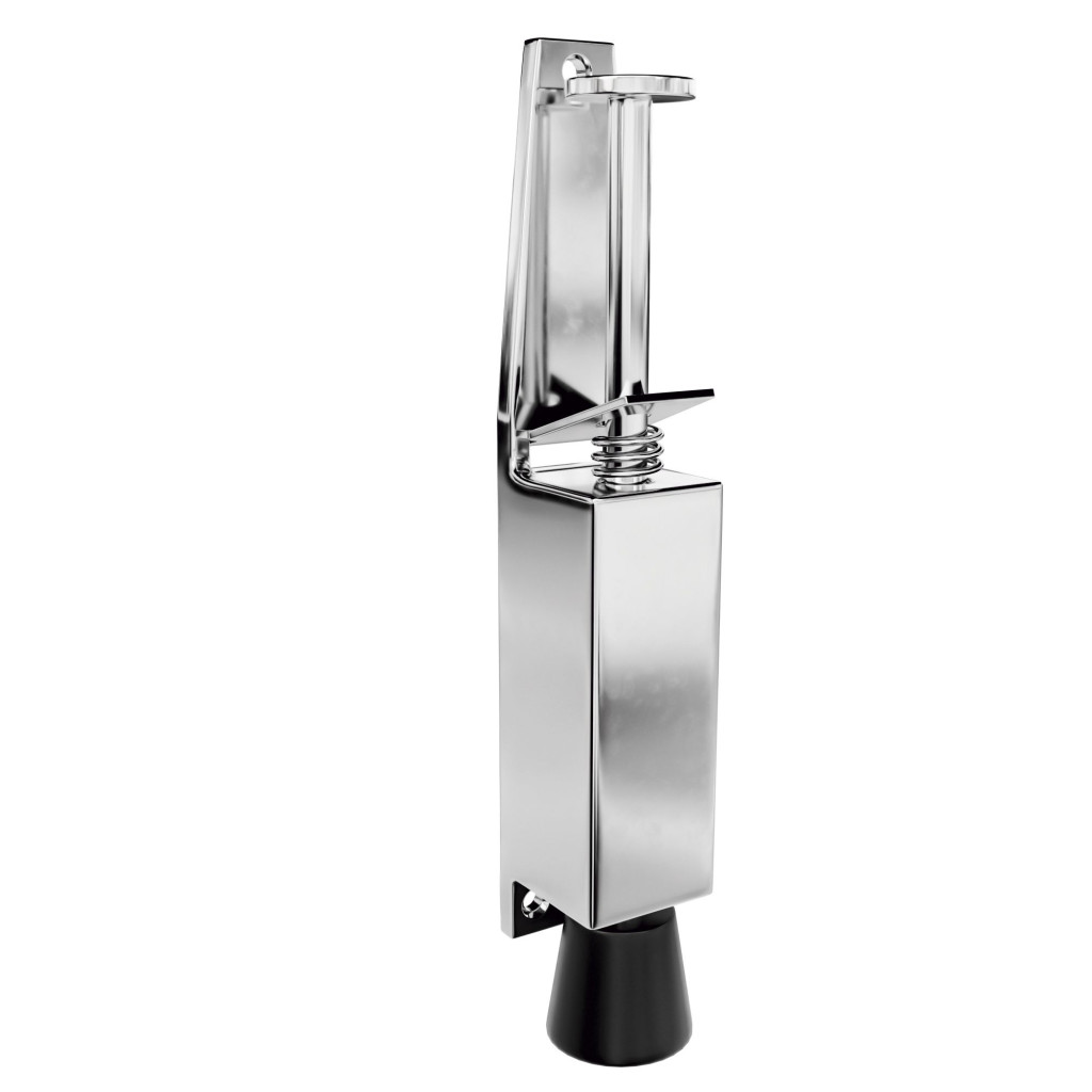 Lábbal működtethető "taposós" ajtókitámasztó. A rögzítéshez magára a letámaszkodó rúdra kell rálépni. A letámasztás kioldásához sem kell lehajolni, a rúd alatti négyszögletes pedálra kell lépni. Az elmozdulás 4,5 cm. Két méretben, több színben.