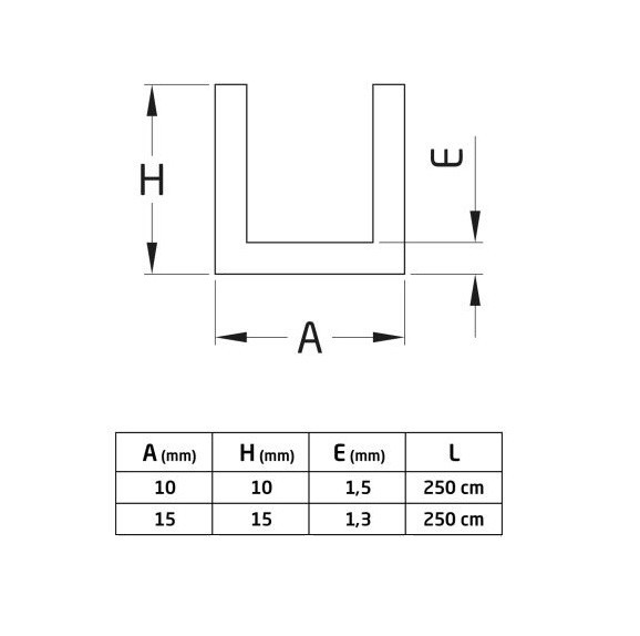 ALU PROFIL U 10X10X10 EZÜST