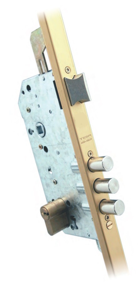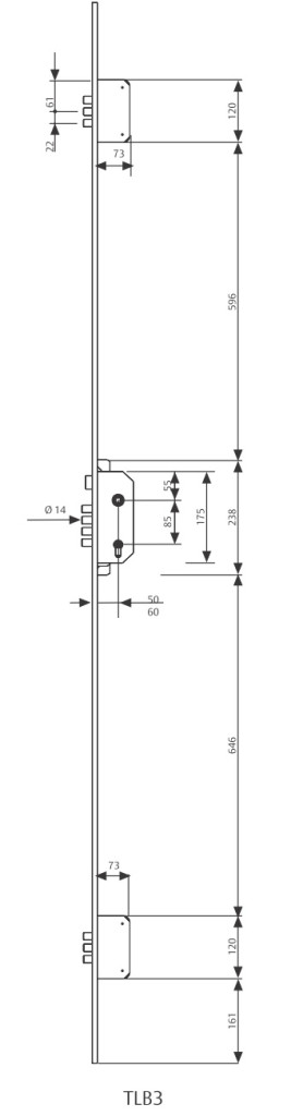 TLB többpontos biztonsági ajtó zár méretben magas és/vagy magas biztonsági igényű bejárati ajtókba. A három zártest stabilan tartja az ajtót, véd a befeszítés, a deformáció ellen, a 73 mm zártest szélesség miatt faajtókba ajánjuk. Két színben, egyéb verziók rendelésre. A még nagyobb biztonság elérésére a pánt oldalra leemelésgátló kiegészítőt ajánlunk. A pajzs miatt körcímkés kilincset, gombot javasolunk hozzá.