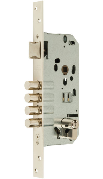 Esztétikus és megbízható zártest, cilinderes működtetéssel, kilincsnyelvvel, négy hengeres zárnyelvvel. Megfelelő zárbetéttel és biztonsági pajzzsal komoly védettséget biztosíthat az ajtónak. MCM termék.