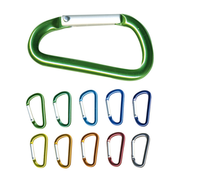 Aszimmetrikus D formájú színes kulcstartó karabíner. A rendelési egység 1 csomag, amiben 10 db különböző színű 60 mm méretű karabíner található. Övre, táskára, szerszámostáskára csatolható kulcstartó funkciójú karabíner, semmilyen hegymászó, falmászó célra nem használható.