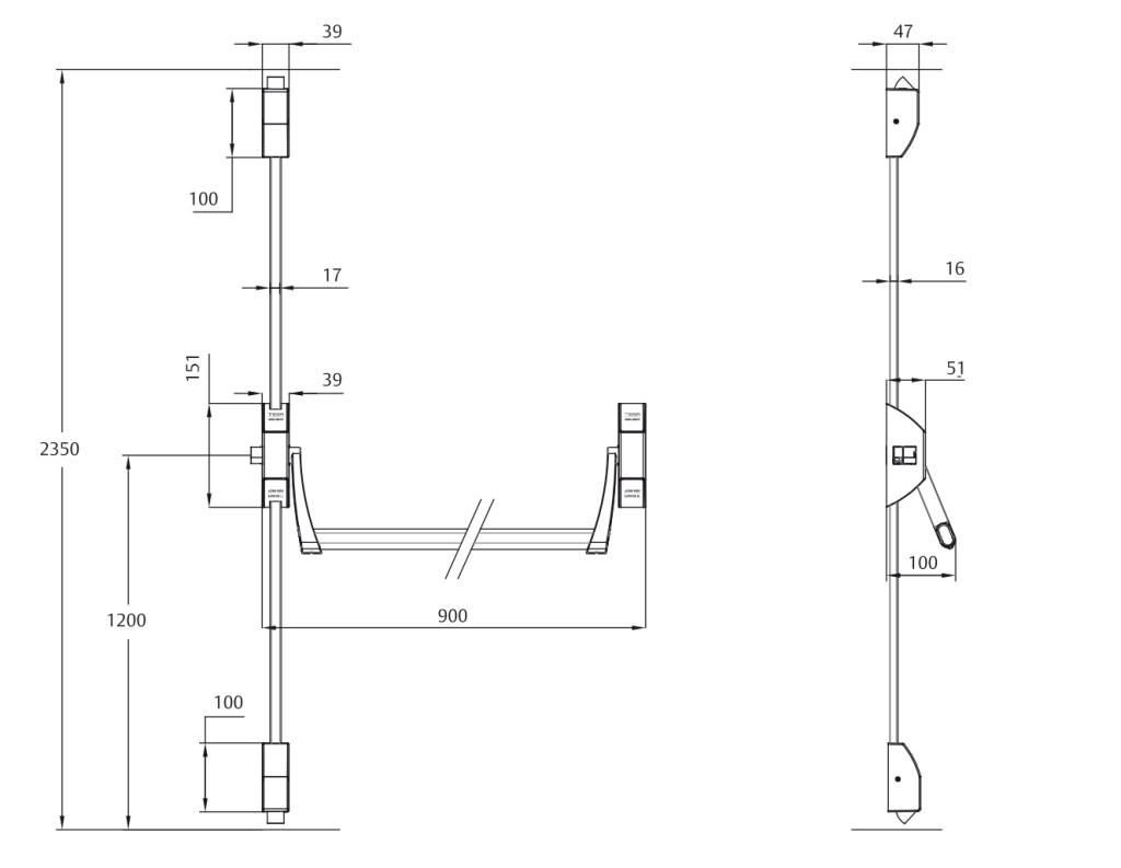 • a keskeny talpak (151 x 39 x 51 mm) univerzálisan szerelhetővé teszik minden ajtóra