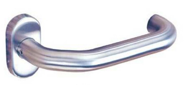 Ovális címkés rugós inox kilincsgarnitúra fémkapukra, portálokra, 8 mm tengellyel. U alakú kilincs, ennél a formánál a legkisebb a veszélye a felakadásnak, visszarántásnak, balesetnek. Alsó rozetta hasonló ovális formában külön rendelhető. Matt inox felület. Nagyon hasonló a 807 kilincshez, de annál egy kicsit nagyobb, 1 cm-rel jobban előre is áll.