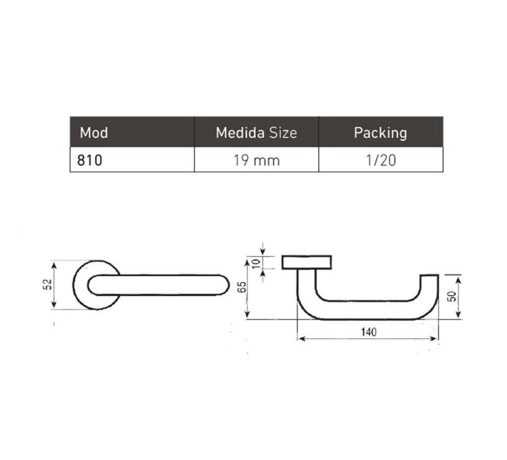 • kilincs hossza 140 mm, átmérője 19 mm (üreges cső)