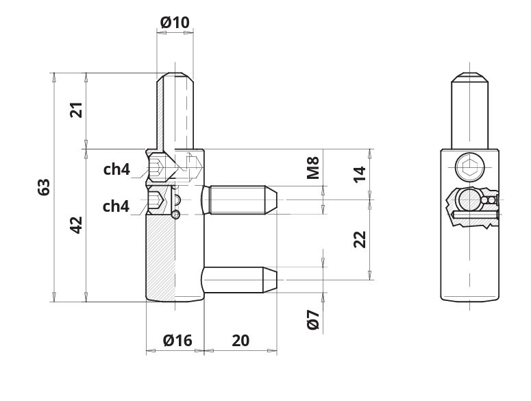 • az alsó rész magassága 42 mm, a karok 20 mm hosszúak, a felső M8 menetes