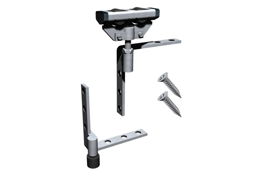 Harmónika ajtó vasalat egységcsomag oldalsó felfüggesztéssel. Egy vasalatcsomag 2 lapot függeszt fel, egy lap súlya max. 20 kg lehet. Acél sínhez. Ugyanebből a típusból kapható középső felfüggesztésű verzió, amelynél a sín mindkét oldalára kiállnak a lapok.