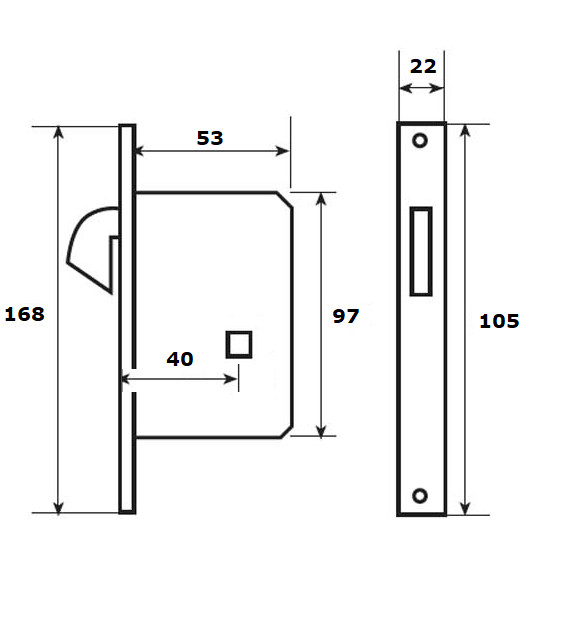 Tolóajtóhoz való inox előlapos bevésőzár, lényegében egy tolóajtóra való kilincstest. Önmagában nem zárható, mivel a kilincs működteti a kampót és ez nem blokkolható. A kilincs lenyomásával húzzuk vissza, vagy csukjuk a tokba a kampót, ezzel megakadályozva, hogy a tolóajtó elguruljon, kisbaba, a szél vagy a társállat kinyissa. Ha a kilincses nyitást meg akarjuk akadályozni, ahoz külön eszköz szükséges. Kisméretű zártest, 53 x 97 mm. Csillogó réz és inox előlappal és ellendarabbal kétféle verzióban kapható.