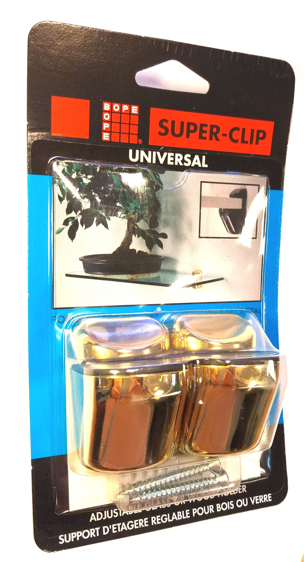 Pontmegfogásos polctartó clip UNIVERSAL fa, bútorlap vagy üveg polclapokhoz. A polclap vastagságához igazítható 4-22 mm között. A polclap maximális szélessége 30 cm lehet. A polclap hosszára nincs megkötés, de az fontos, hogy a két klip egymástól való távolsága max. 40 cm lehet. Arany színben, párban csomagolva blisterben. A maximális terhelhetőség 25 kg, ami egy tájékoztató jellegű adat. Kérjük, vegye figyelembe, hogy a terhelhetőség nagymértékben függ a fal és a felszereléshez használt dübelek minőségétől, a polclap saját súlyától, valamint attól, hogy a polclapot egyenletes, vagy hirtelen dinamikus terhelés éri (pl. egy macska ráugrik), és hogy a terhelés a falhoz közel, a két klip között, vagy a lap külső szélénél jelentkezik-e.