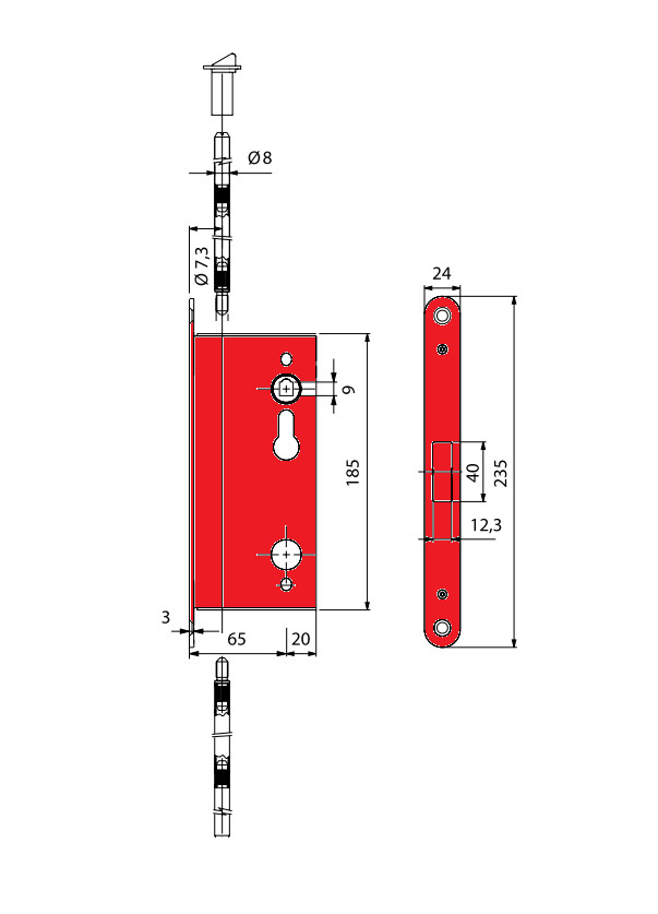 Ez a zár a kétszárnyú vészkijárati ajtó passzív (alapesetben nem nyitogatott) szárnyára való bevésőzár, abban az esetben, ha az aktív szárnyba CF60 bevéső pánikzár van beépítve. A CF60 zár ellenoldali fogadórésze, tűzgátló ajtóba is alkalmas.