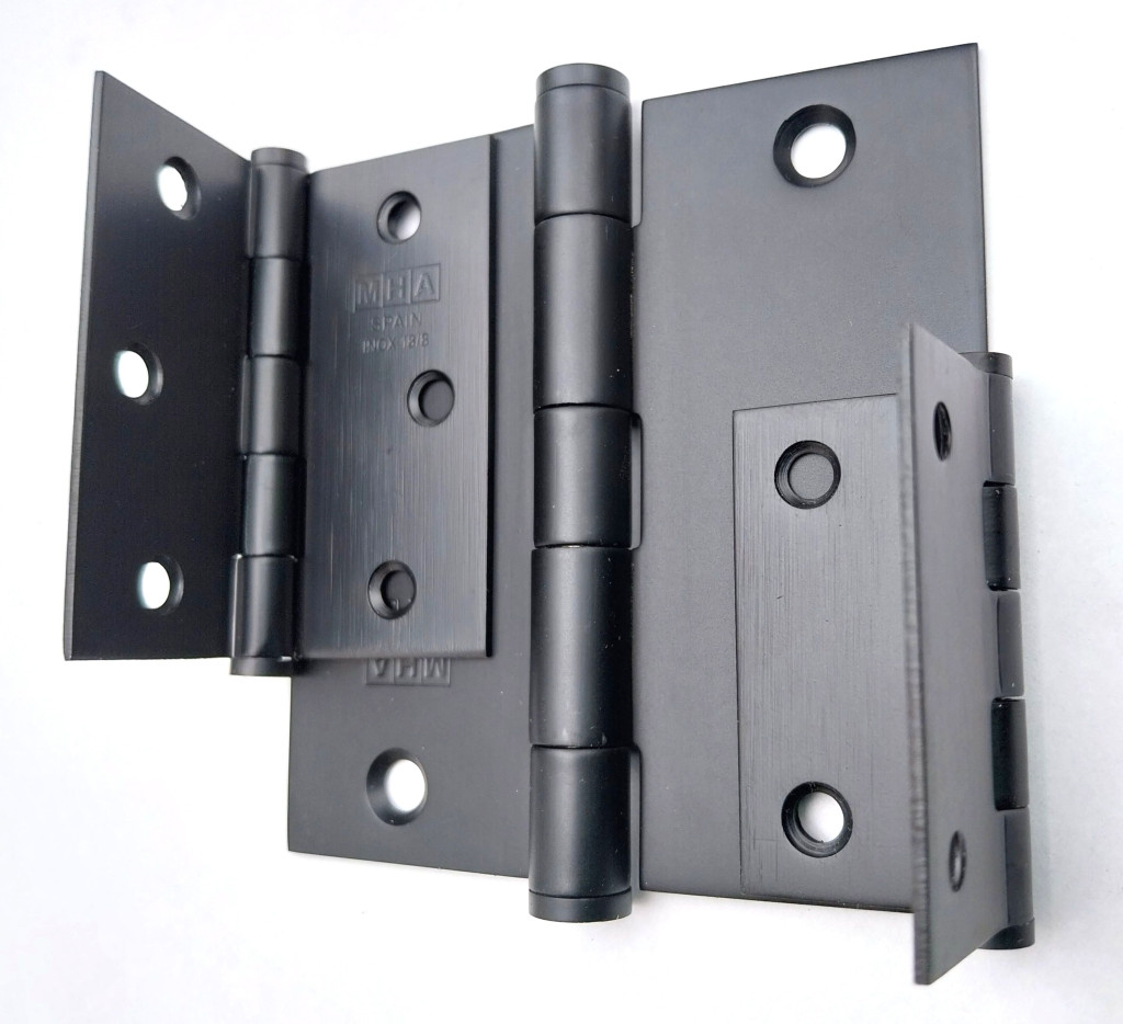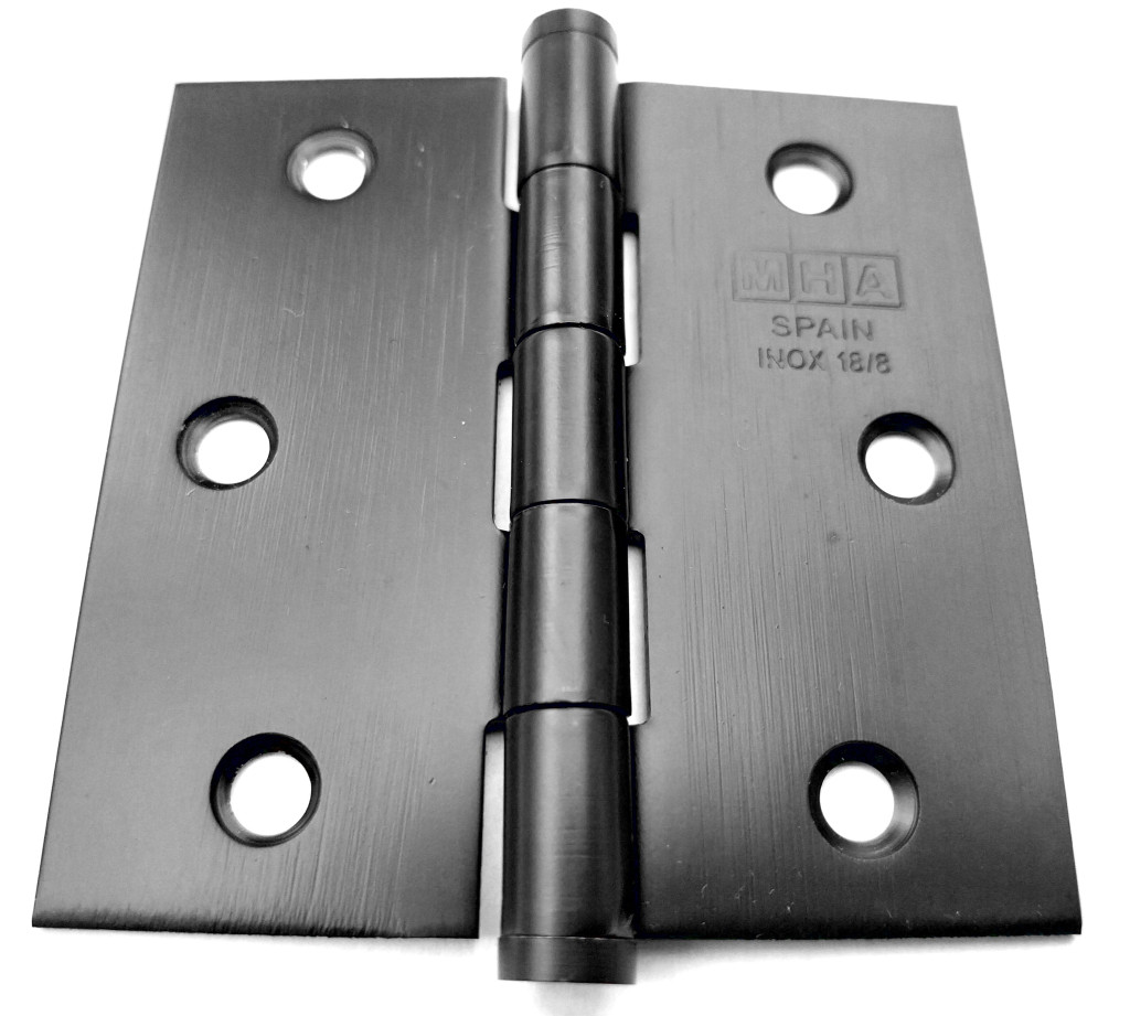 Matt felületű, szögletes inox anyagú, de fekete színű bútor zsanér, több méretben. Négyzetes alak, nem leemelhető. A fekete szín nem festett. Ugyanez a zsanér matt inox színben is készleten van.