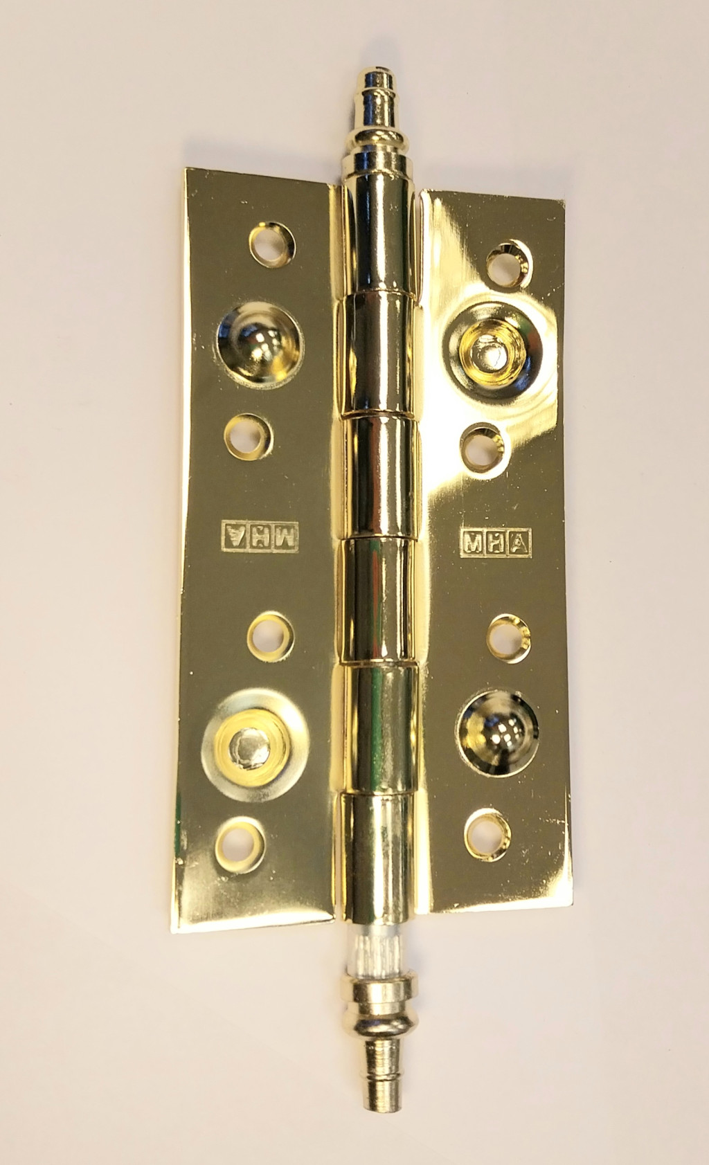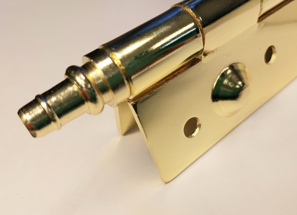 Díszes, kihúzható tengelyes acél zsanér csillogó rezezett felülettel bejárati ajtókra. A zsanér lapja 150 mm magas, a díszes tengely 200 mm magas. A zsanér speciális kialakítása által leemelésgátló, felfeszítésgátló funkciót tölt be a bejárati ajtón. A betörők által alkalmazott egyik behatolási mód az ajtó leemelése a pántjairól az ajtó pánt oldalának feszegetésével. A lötyögős ajtó, ócska fa tok, hagyományos kétpontos ajtópántok nem állnak ellen a felfeszítésnek. Számos megoldás van a pántoldal megerősítésére, ezek közül az egyik ennek a pántnak a felszerelése. Akár egy is elég ajtónként. A dudorok az ajtó csukott állapotában beleszorulnak a lyukakba, így az ajtólap leemelését megakadályozzák.