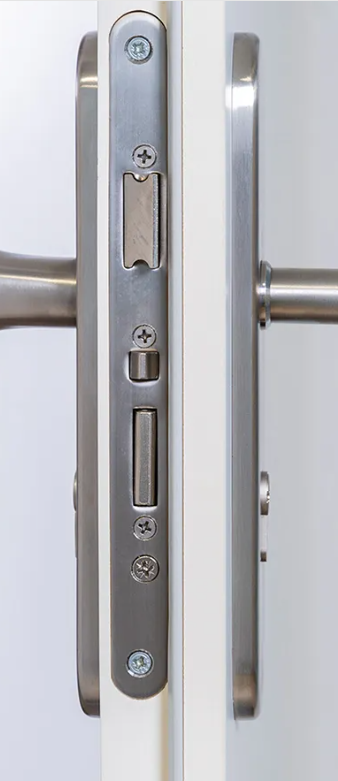 A megerősített kilincscímek (amennyiben letakarják a zárbetétet) és a kerek vagy ovális biztonsági pajzsok, a mágneses keményített pajzsok azok, amik valóban megvédik az ajtót és a mögötte lévő értékeinket. A v a s t a g (általában alumínium) kilincscímke nem elég, ha nem kemény anyagból van, nem megerősített átmenő csavarokkal van felszerelve, és a zárbetét előtt nincs kemény anyagból készült védelem*.